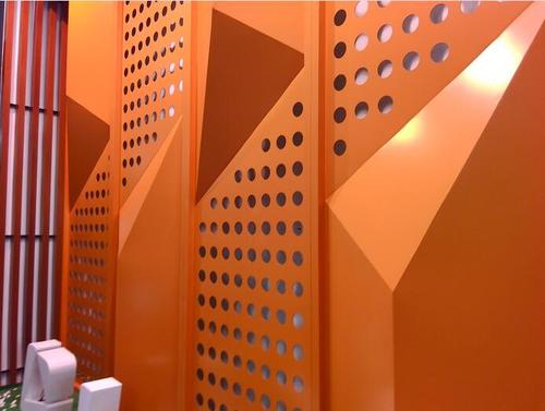 与常规铝单板相比,冲孔铝单板的特征就是表面形状各异的冲孔(包括圆孔、方孔、五角星、六边形孔等),装饰效果突出,也能够在一定程度上起到降低噪音的作用。集装饰性与实用性于一体,冲孔铝单板在工程装饰中使用的越来越多。